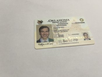 Scannable Oklahoma identification manufactured using high-contrast metallic inks and appropriate absorbency techniques.