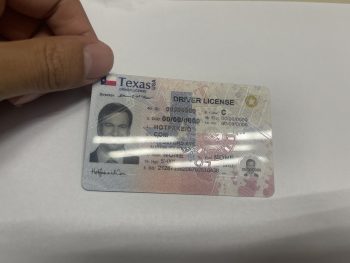 Scannable Texas identification is manufactured using contrasting colors, textured background and plethora of invisible security elements.
