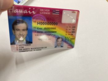 Scannable Hawaii identification manufactured using a combination of intrinsic printing and embossing.